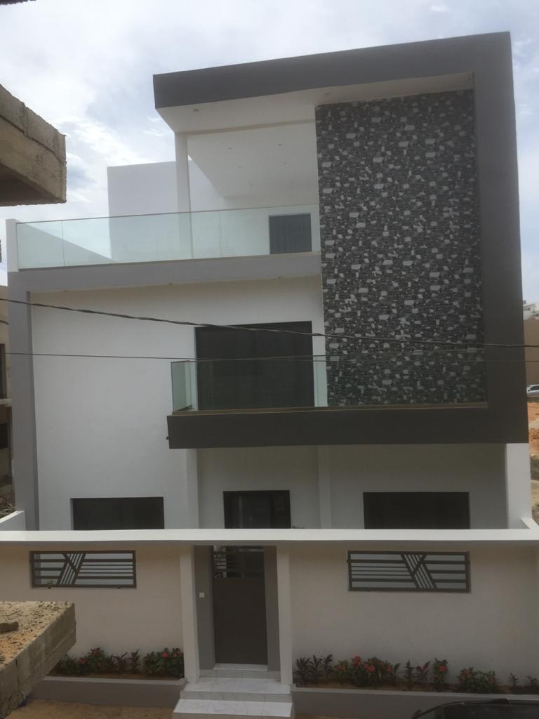 Nous mettons en vente une villa R+2 construite dans les normes européennes avec un design d'architecture moderne extérieur et intérieur dans la Cité Mbackiou Faye, très calme, résidentielle et fermée, composée de: